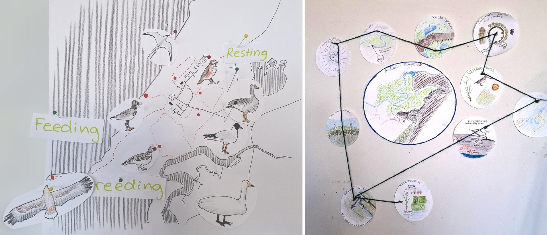 With the natural setting of the Andakill bird sanctuary, protected area and Ramsar designated site, a series of didactic exercises have been developed to promote ideas, reflections and field actions. The exercise conducted in Andakill, located along the delta of the Hvíta River in Borgarfjörður, explores new ways of learning and interacting with the territory, which stands out as a key area for the conservation of wetlands and ecosystems.
